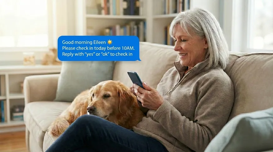 CheckRise is a daily SMS check-in service for people living independently. Every day, we send a text message asking you to confirm you're okay. If you don't respond, we automatically alert your designated care circle contacts.